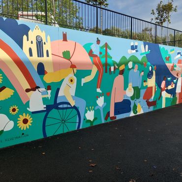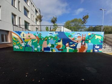 The mural is bright and colourful and aims to make everybody who needs the new Emergency Department feel welcome.